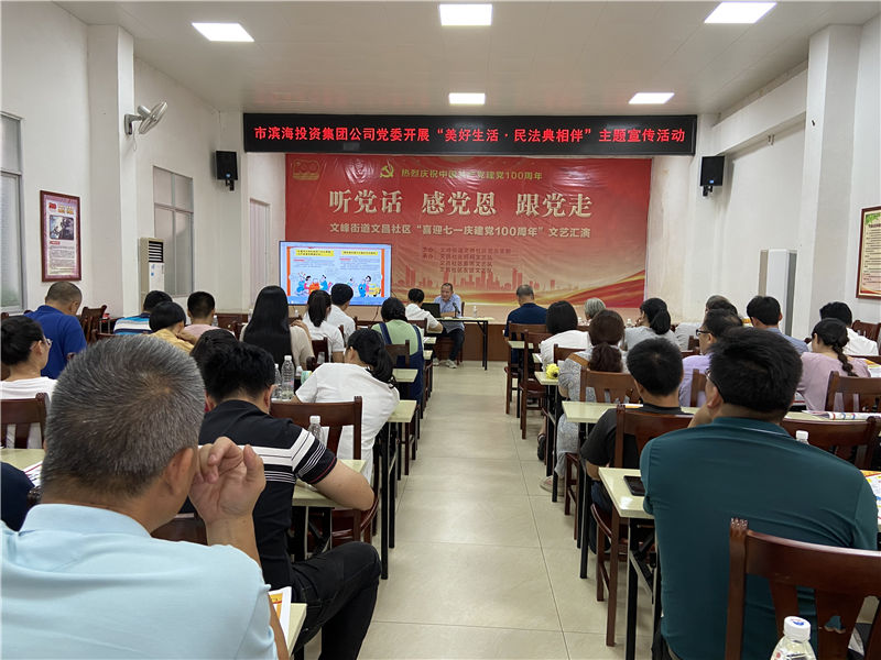 2021年6月28日,集團(tuán)公司黨委組織黨員干部到文昌社區(qū)開展“美好生活·民法典相伴”主題宣傳活動(dòng)。并在文昌社區(qū)新時(shí)代文明實(shí)踐大課堂舉辦了一場(chǎng)《中華人民共和國民法典》宣傳宣講。