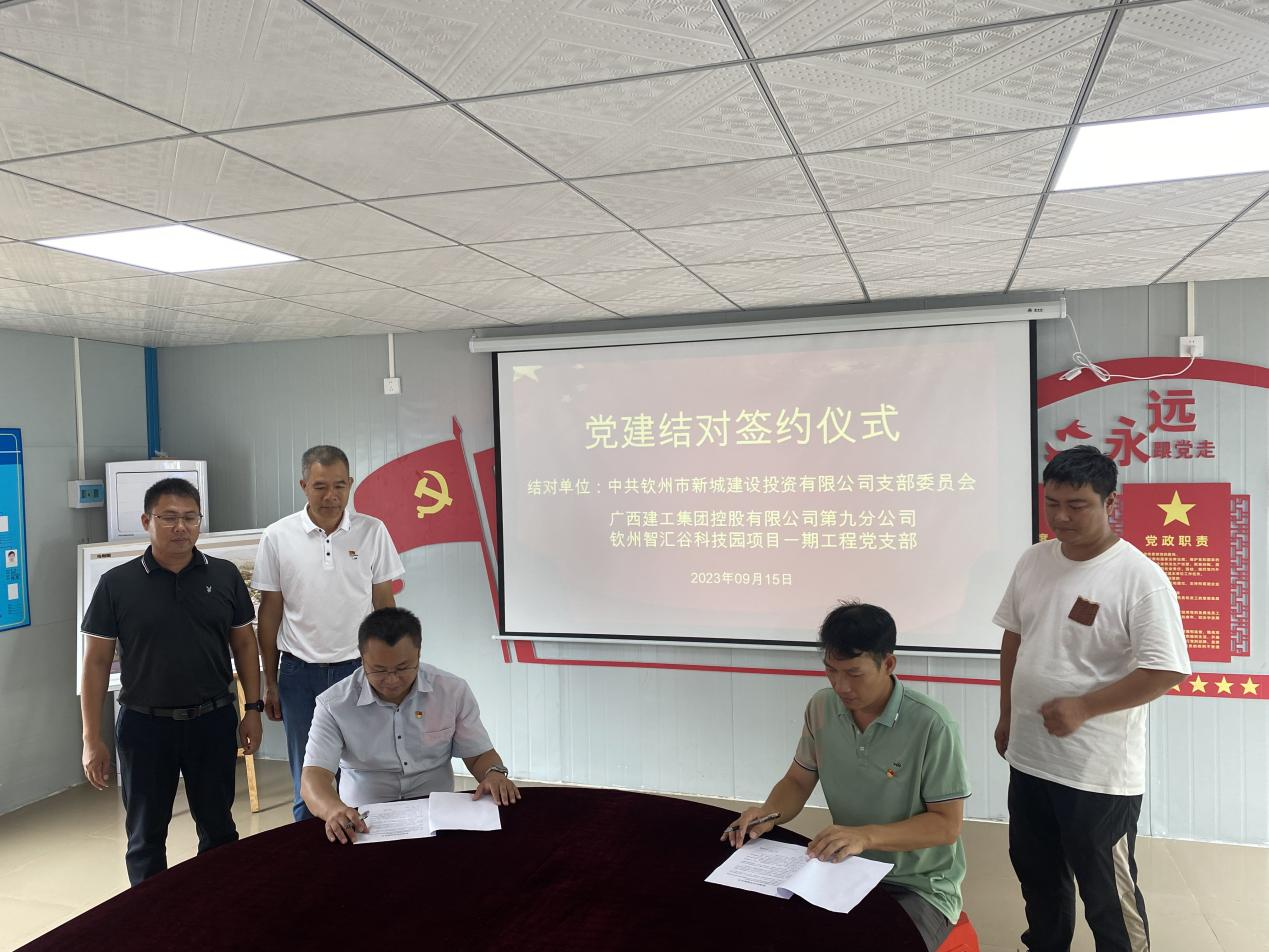 為充分發(fā)揮黨建引領(lǐng)作用,護航項目建設質(zhì)量、安全生產(chǎn),促進市重點項目建設提速增效,2023年9月15日,建投公司黨支部與廣西建工集團欽州智匯谷科技園項目一期工程黨支部舉行黨建結(jié)對共建協(xié)議簽約儀式。集團公司副總經(jīng)理、建投公司黨支部書記劉雙,欽州智匯谷科技園項目一期工程項目經(jīng)理劉鐘明等出席簽約儀式并簽約。
