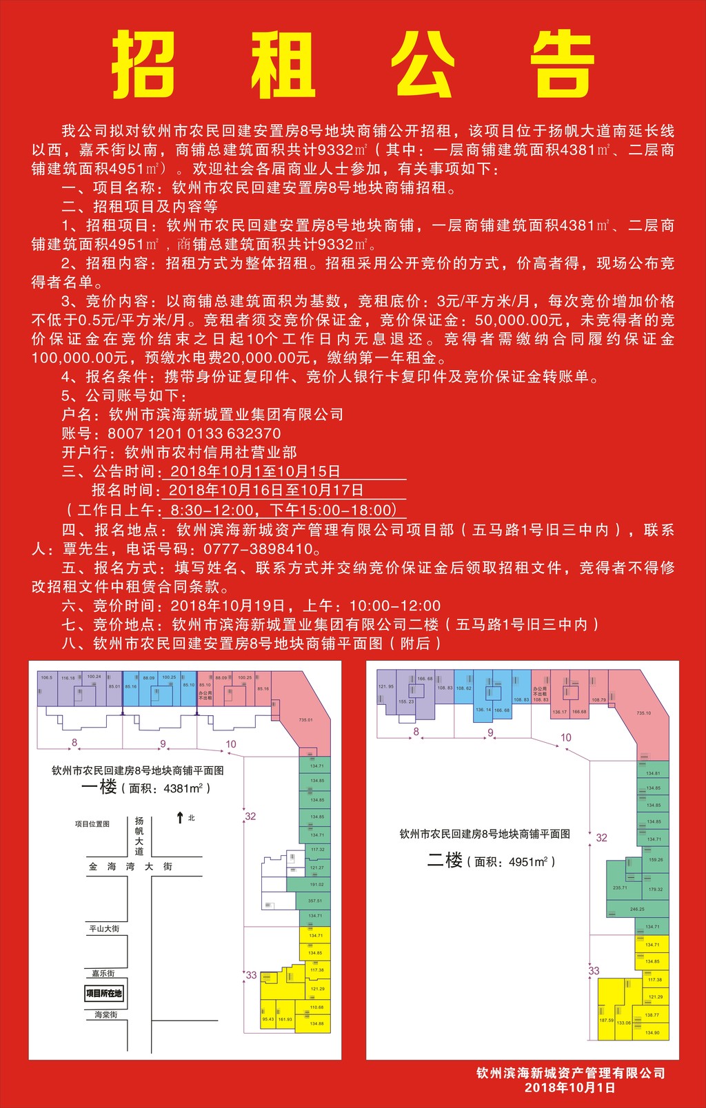 欽州市農(nóng)民回建安置房8號(hào)地塊商鋪招租公告