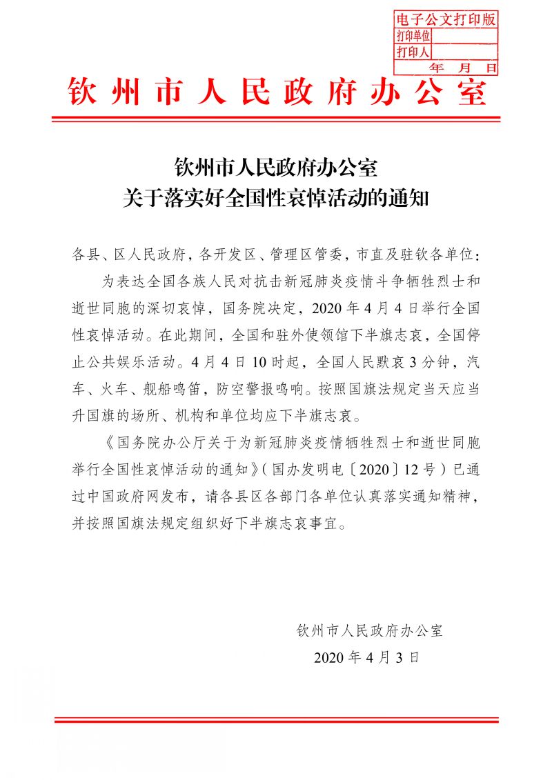 關于落實好全國性哀悼活動的通知