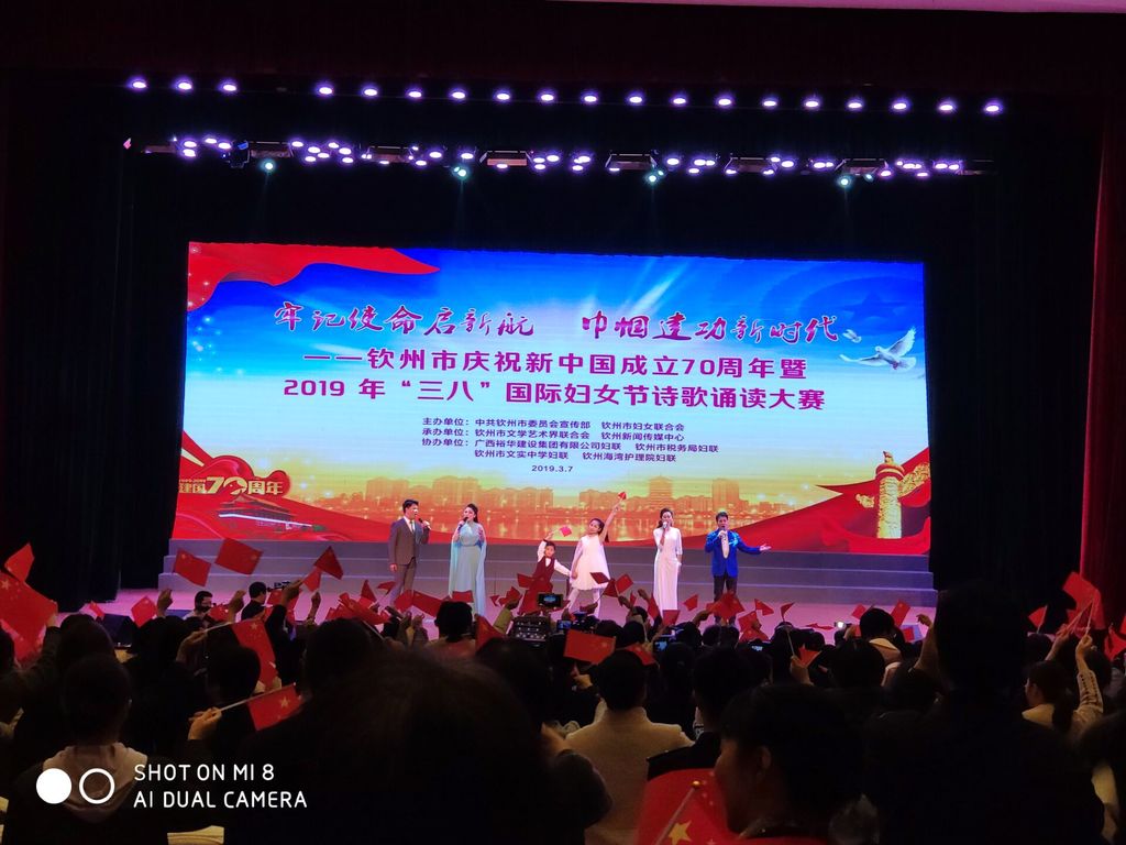 2019年是新中國(guó)成立70周年,是決勝全面建成小康社會(huì)、實(shí)現(xiàn)第一個(gè)百年奮斗目標(biāo)的關(guān)鍵之年,也是貫徹落實(shí)中國(guó)婦女十二大目標(biāo)任務(wù)的開(kāi)局之年。為激勵(lì)全市廣大婦女把握時(shí)代主題,貢獻(xiàn)巾幗力量,由欽州市委宣傳部、欽州市婦女聯(lián)合會(huì)主辦的“欽州市慶祝新中國(guó)成立70周年暨2019年 國(guó)際婦女節(jié)詩(shī)歌誦讀大賽”在欽州市老年大...
