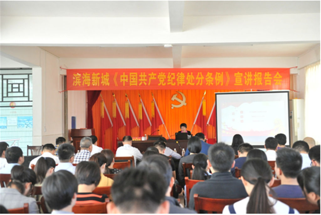11月28日下午,市紀(jì)委駐市國(guó)資委紀(jì)檢組到市濱海新城召開《中國(guó)共產(chǎn)黨紀(jì)律處分條例》宣講報(bào)告會(huì),對(duì)新修訂的《中國(guó)共產(chǎn)黨紀(jì)律處分條例》進(jìn)行了專題宣講。綜合監(jiān)督單位市濱海新城管委、市濱海置業(yè)集團(tuán)公司共70多名黨員領(lǐng)導(dǎo)干部聽取了宣講。