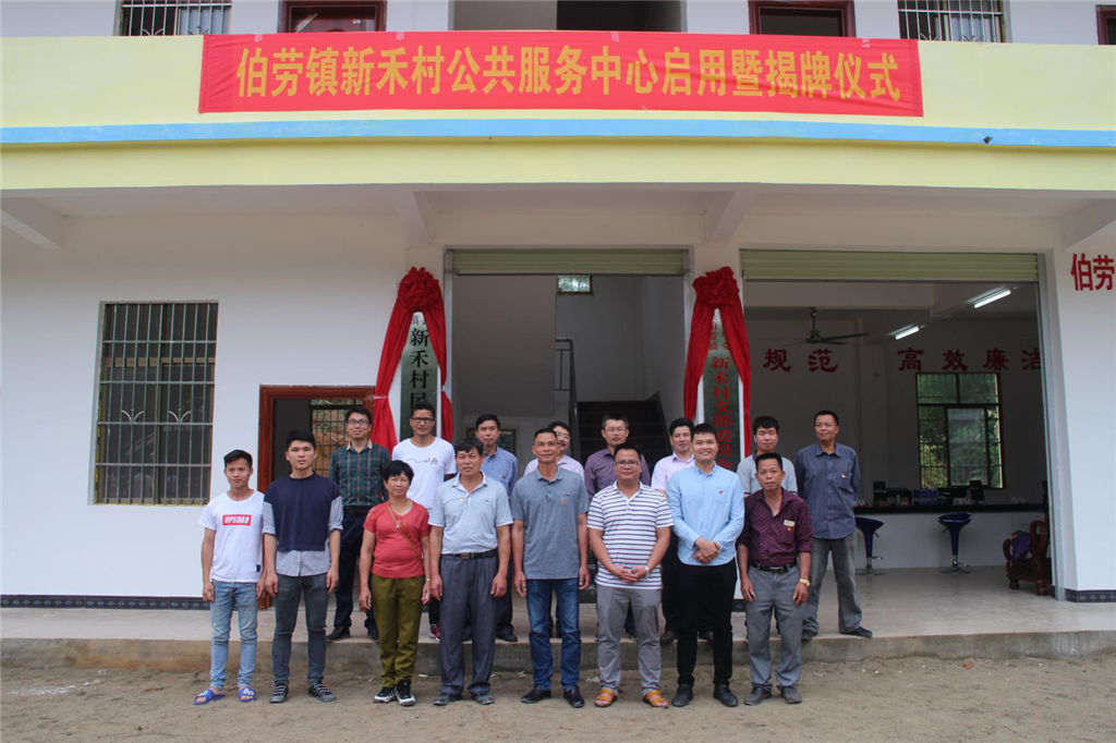 2018年4月28日上午,集團公司扶貧幫扶聯(lián)系村——靈山縣伯勞鎮(zhèn)新禾村在新公共服務(wù)中心舉行揭牌儀式。我集團公司和伯勞鎮(zhèn)人民政府、市檔案局、市林科所主要領(lǐng)導(dǎo)及駐村第一書記、包村工作組、村委全體成員齊聚新公共服務(wù)中心大樓前,共同見證新禾村新公共服務(wù)中心大樓揭牌儀式。