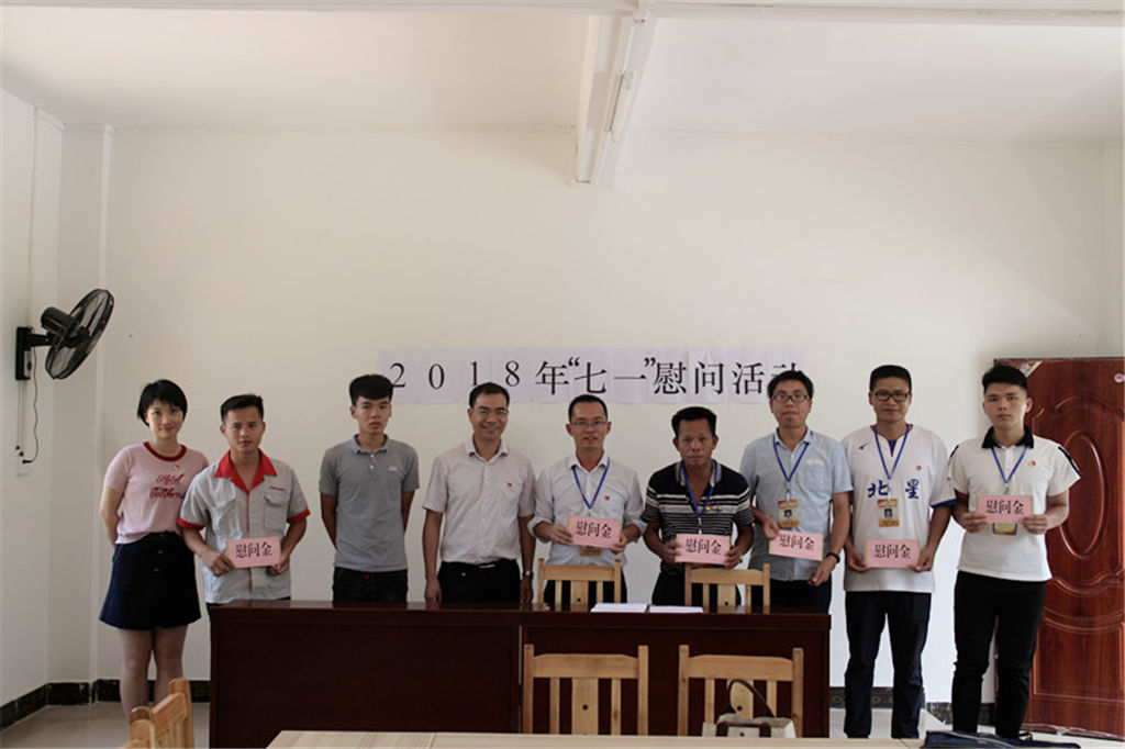 為紀(jì)念建黨97周年,弘揚(yáng)黨的光榮傳統(tǒng)和優(yōu)良作風(fēng),充分體現(xiàn)黨組織對(duì)基層黨員的關(guān)懷和愛護(hù),6月28日上午,集團(tuán)公司黨委副書記覃世金率部分黨員干部來到幫扶村—靈山縣伯勞鎮(zhèn)新禾村,開展集團(tuán)公司“七一”慰問生活困難黨員、老黨員和村干部活動(dòng),為他們送去慰問金和慰問品,同時(shí)也對(duì)集團(tuán)公司幫扶的貧困戶進(jìn)行了入戶走訪。 在慰問活動(dòng)中,每到一戶慰問對(duì)象家中,集團(tuán)公司領(lǐng)導(dǎo)干部都和老黨員親切交談,傾聽老黨員暢談革命往事,詳細(xì)了解他們的身體狀況和生產(chǎn)情況,幫助他們解決生活中的難題,征求意見和建議,使他們精神上得到更多的鼓勵(lì),切身感受到黨組織的關(guān)懷。慰問中,集團(tuán)公司領(lǐng)導(dǎo)干部對(duì)老黨員多年來為黨的事業(yè)作出的貢獻(xiàn)表示感謝,并鼓勵(lì)他們要保持堅(jiān)定不移的信念,樹立戰(zhàn)勝困難的信心,繼續(xù)發(fā)揮余熱,為新禾村的發(fā)展積極建言獻(xiàn)策。接受慰問的老黨員們都十分感謝集團(tuán)公司領(lǐng)導(dǎo)在百忙之中抽空前來看望和慰問,這讓他們倍感黨的關(guān)懷和愛護(hù),并表示將一如既往地為村里各項(xiàng)工作獻(xiàn)出自己力所能及的力量。 ![]()