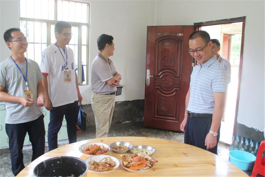 (圖為趙文博董事長參觀駐村隊(duì)員廚房的內(nèi)外環(huán)境)