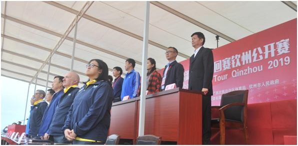 10月31日,2019年世界沙灘排球賽—欽州公開(kāi)賽開(kāi)幕式在比賽現(xiàn)場(chǎng)主賽場(chǎng)舉行,國(guó)際排聯(lián)技術(shù)代表布萊爾•哈里森、國(guó)家體育總局排球運(yùn)動(dòng)管理中心黨委書(shū)記顧國(guó)平講話,譚丕創(chuàng)市長(zhǎng)致辭并宣布2019年世界沙灘排球巡回賽開(kāi)幕。