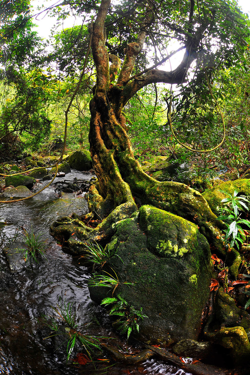 山中到處是淙淙溪流,溪水清瀅碧透,游魚可數(shù)。溪旁綠樹成蔭,遮天蔽日。