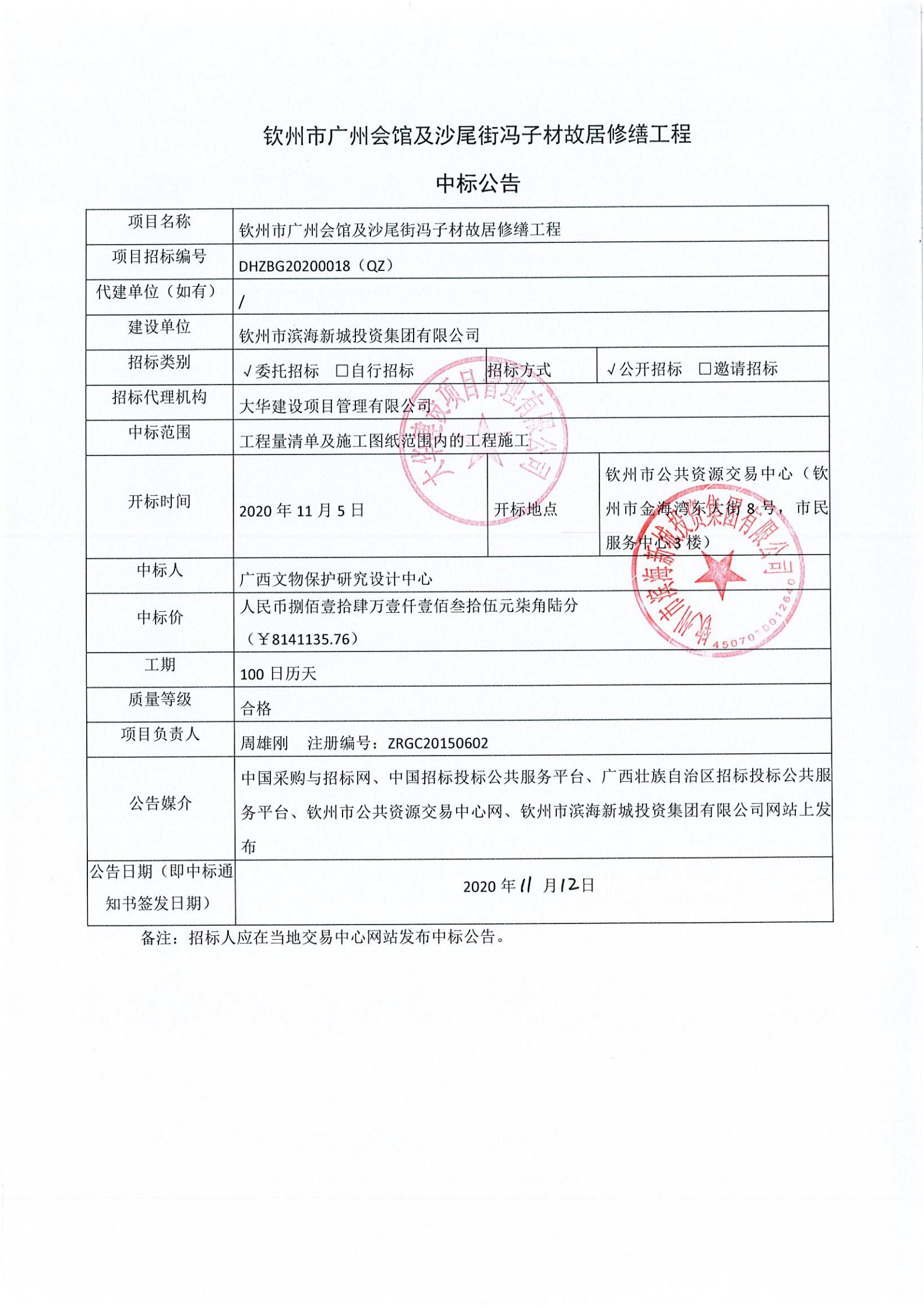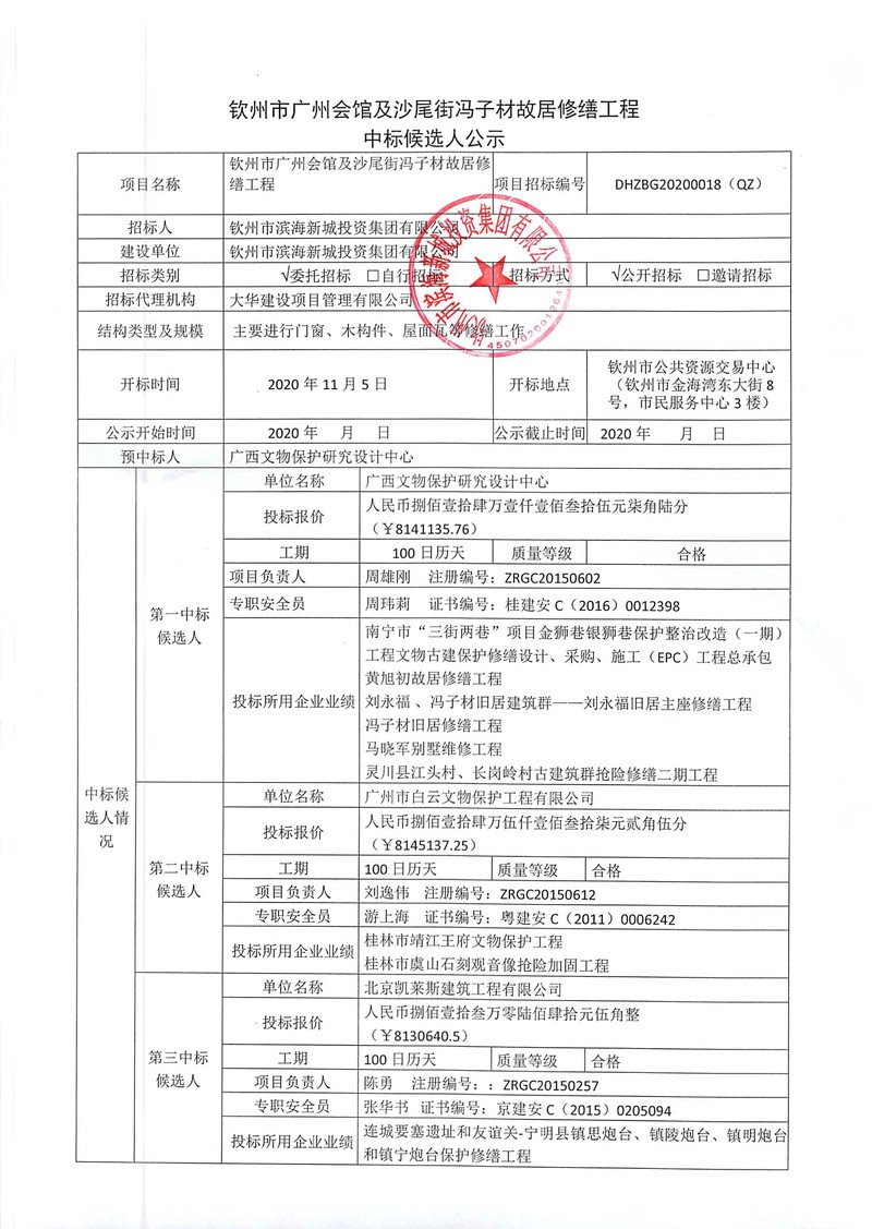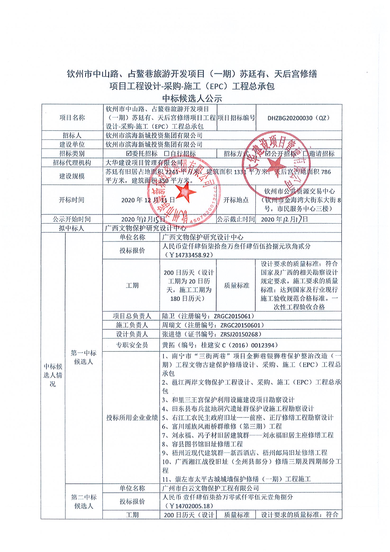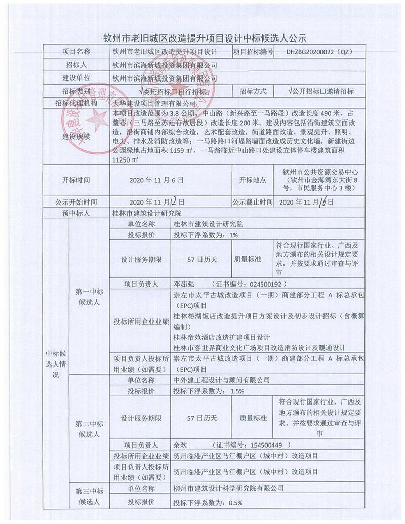 項(xiàng)目名稱 欽州市中山路、占鰲巷旅游開(kāi)發(fā)項(xiàng)目(一期)設(shè)計(jì) 項(xiàng)目招標(biāo)編號(hào) DHZBG20200008(QZ) 招標(biāo)人 欽州市濱海新城投資集團(tuán)有限公司 建設(shè)單位 欽州市濱海新城投資集團(tuán)有限公司 招標(biāo)類(lèi)別 ...