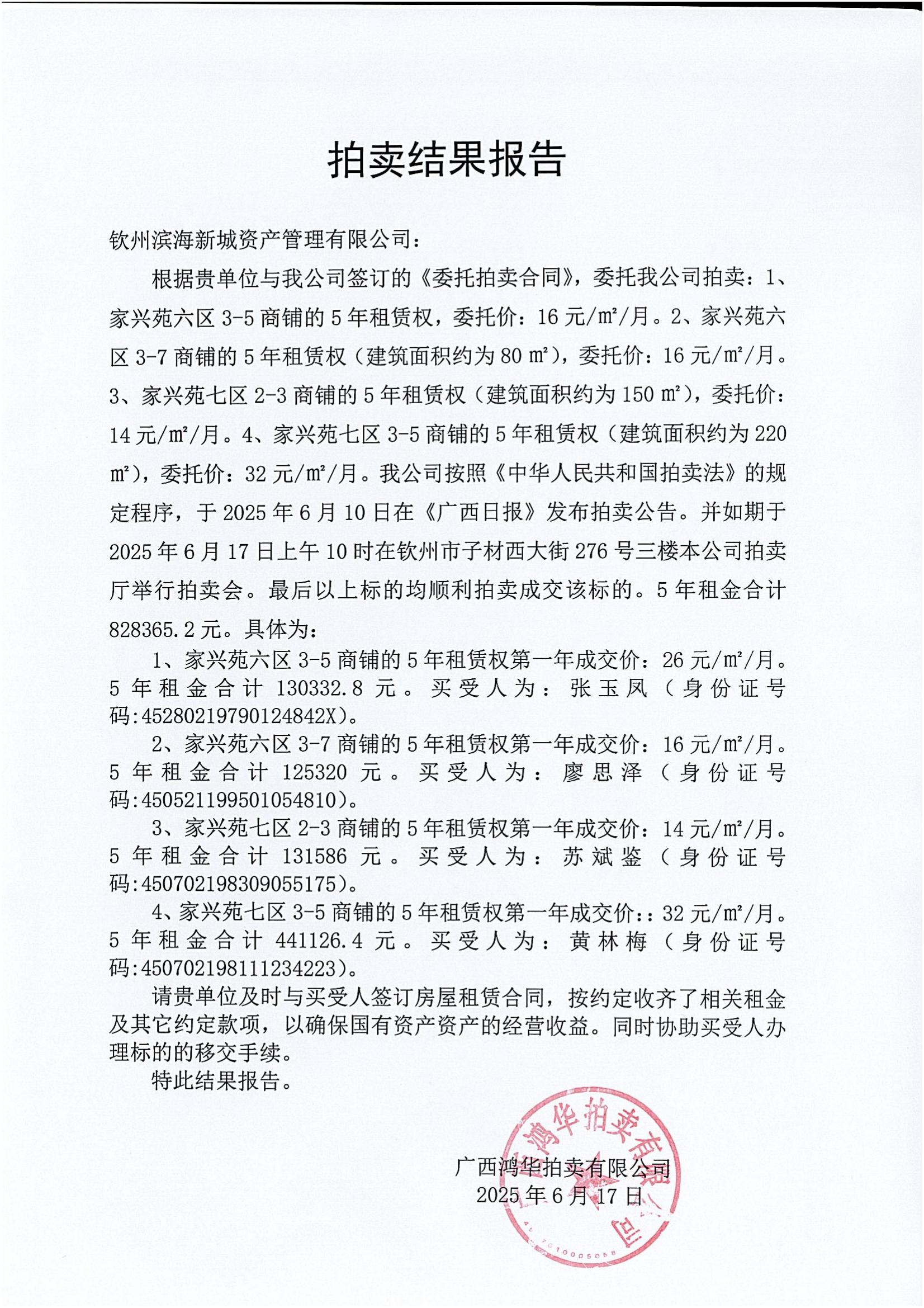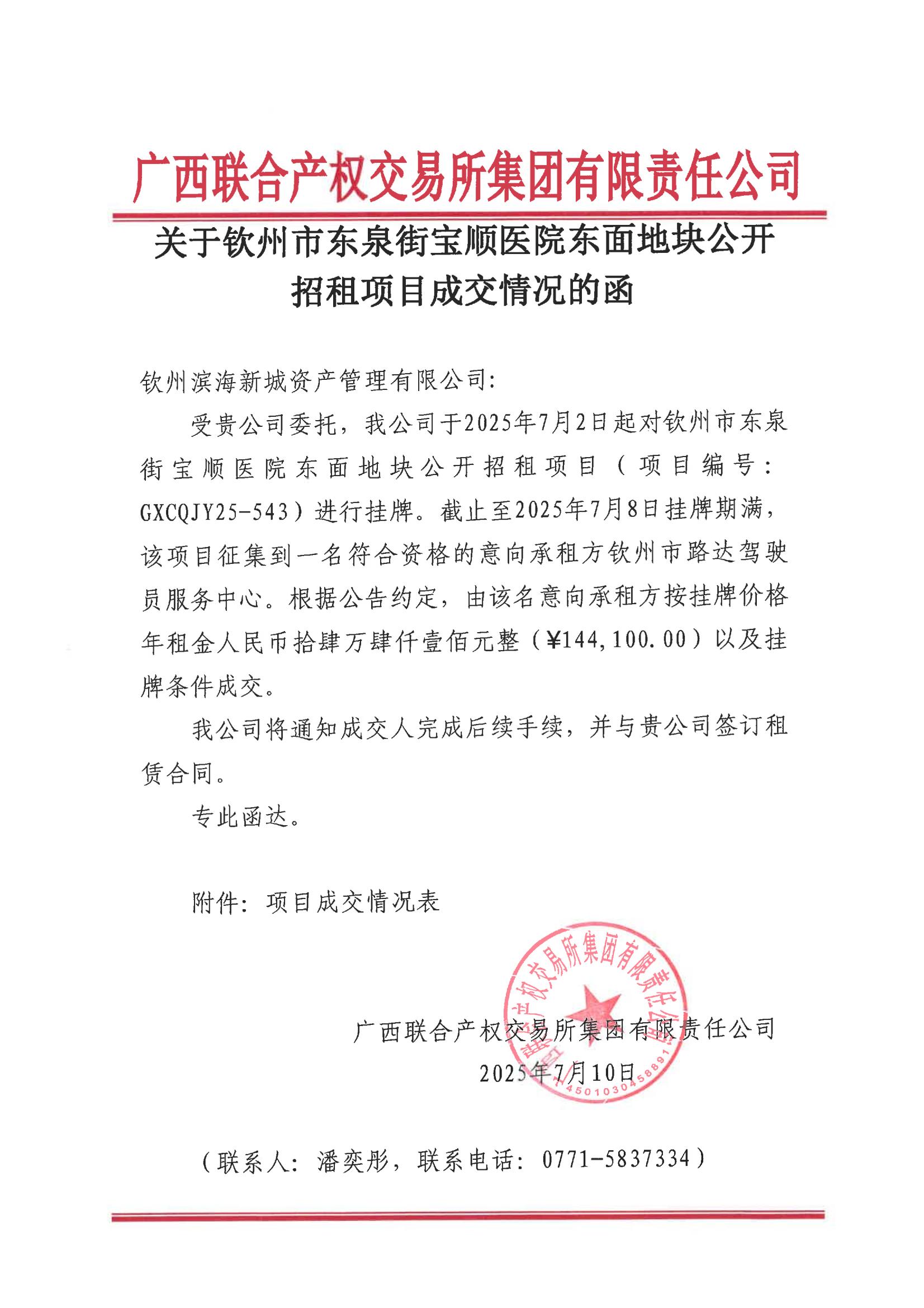 關(guān)于欽州市東泉街寶順醫(yī)院東面地塊公開(kāi)招租項(xiàng)目成交情況的函