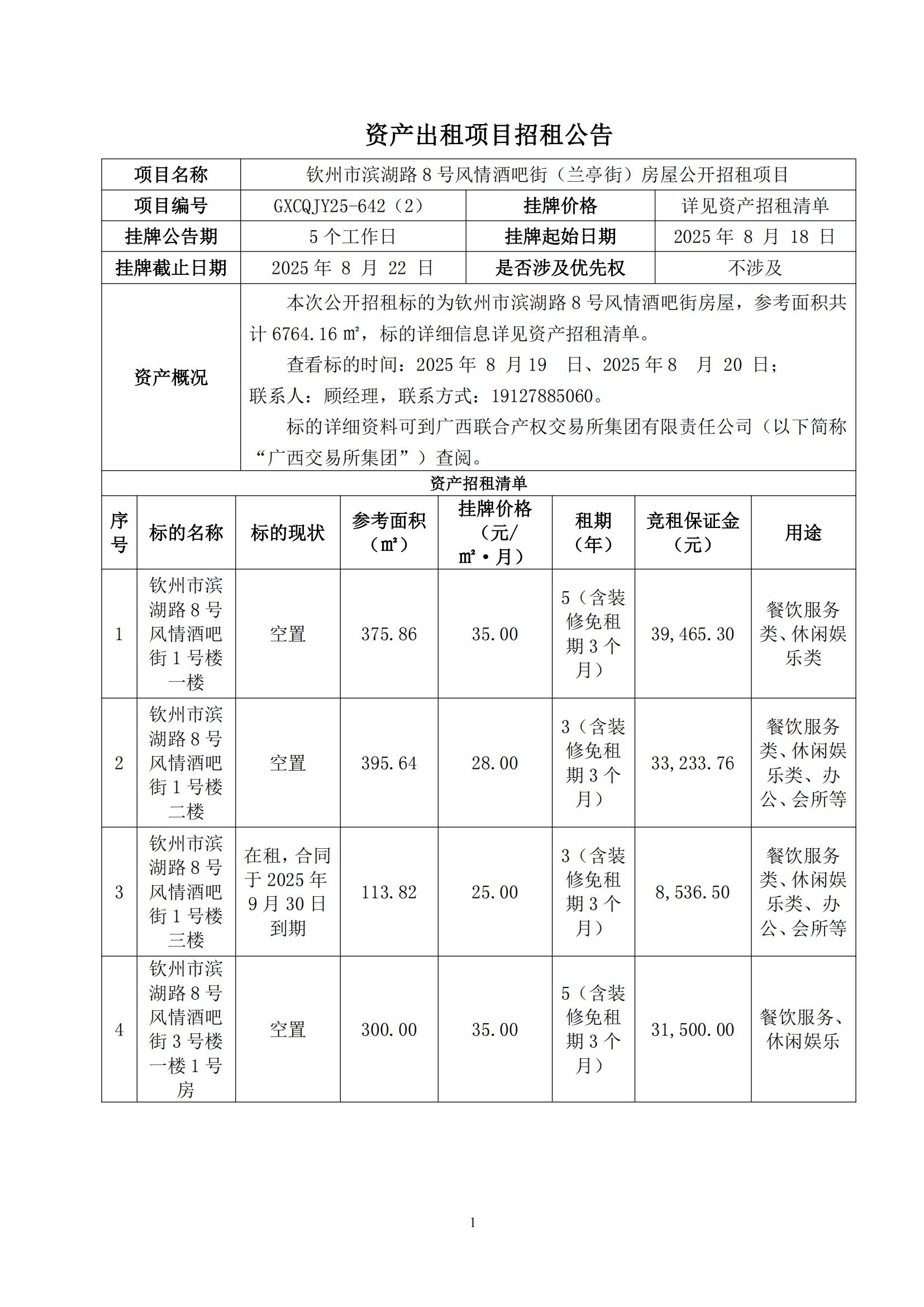 欽州市濱海文化旅游投資有限公司關(guān)于欽州市老街范圍11處房屋(場(chǎng)地)公開(kāi)招租結(jié)果公示