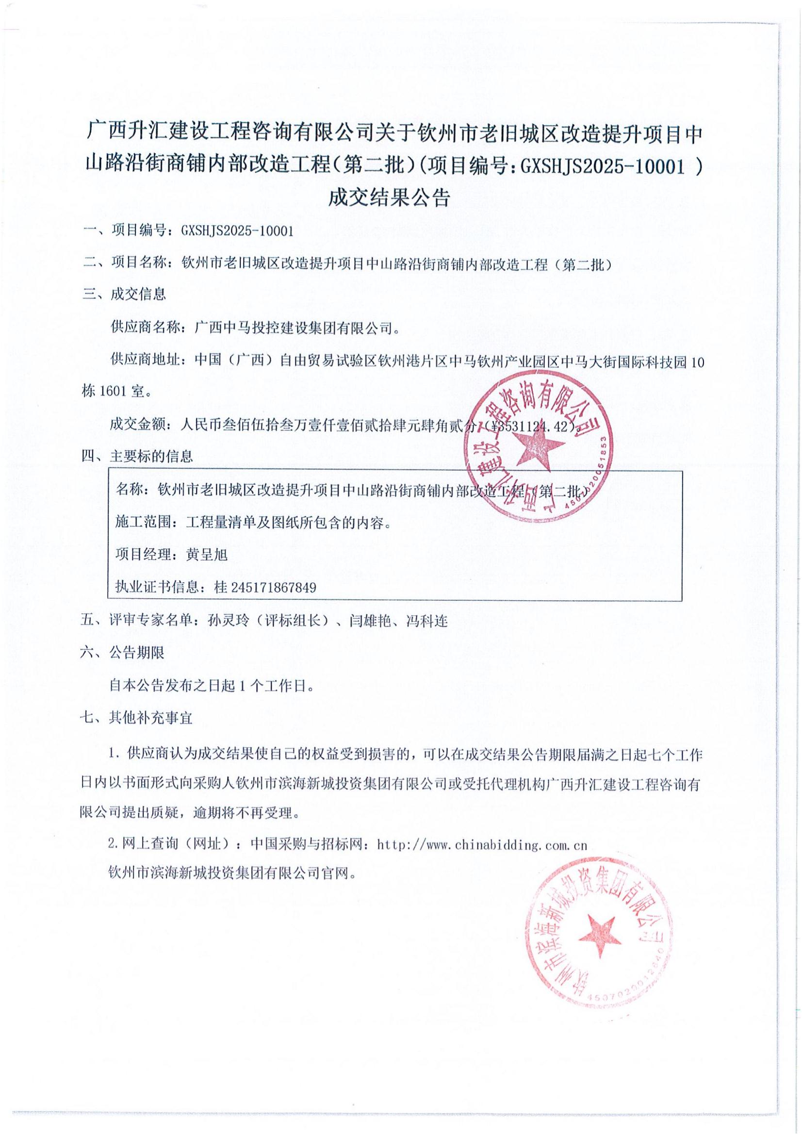 欽州市老舊城區(qū)改造提升項(xiàng)目中山路沿街商鋪內(nèi)部改造工程(第二批)-成交公告