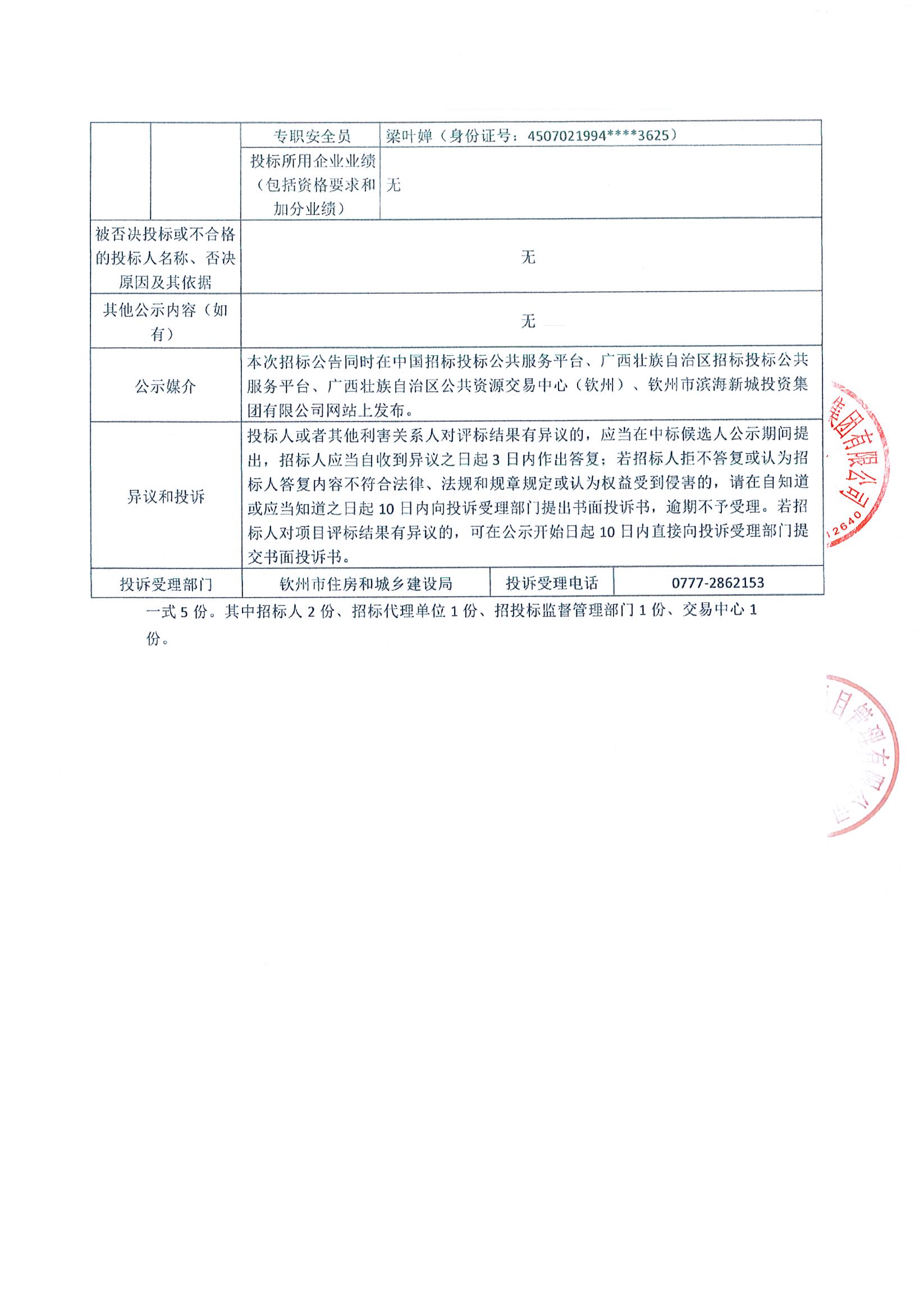 欽州市外國語學校新校區(qū)場地平整工程(標高5.00-7.00)中標候選人公示