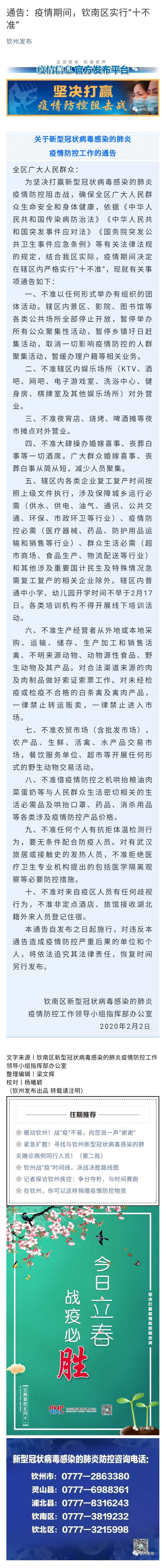 通告:疫情期間,欽南區(qū)實行“十不準(zhǔn)”